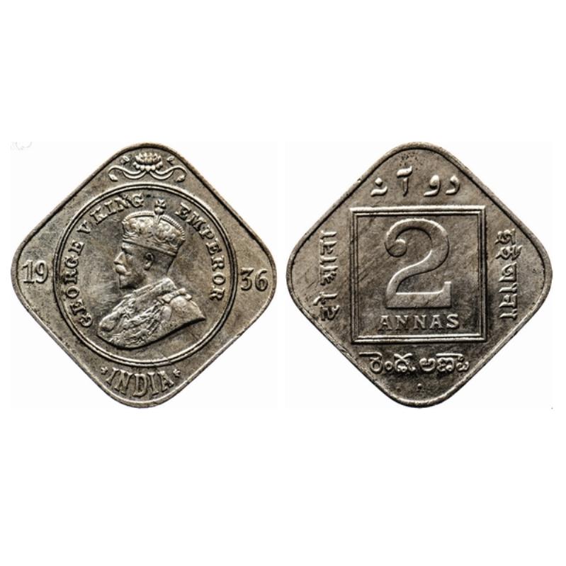 George V, Copper Nickel, 2 Annas, 1936, Bombay Mint. GK 1140. ...