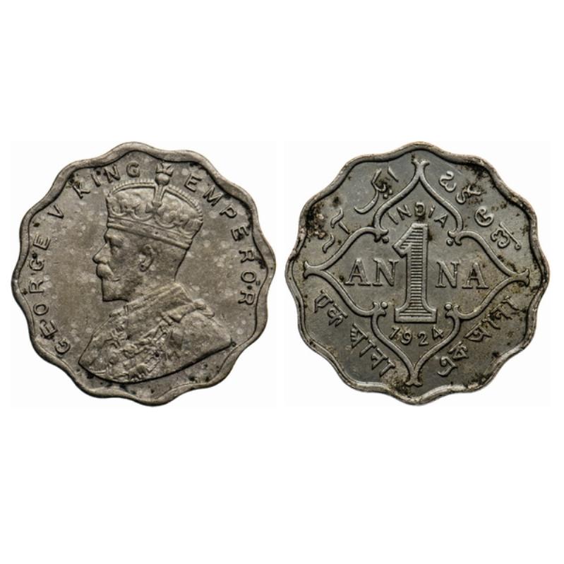 George V, Copper Nickel, 1 Anna, 1924, Calcutta Mint, No dot. GK 1153.