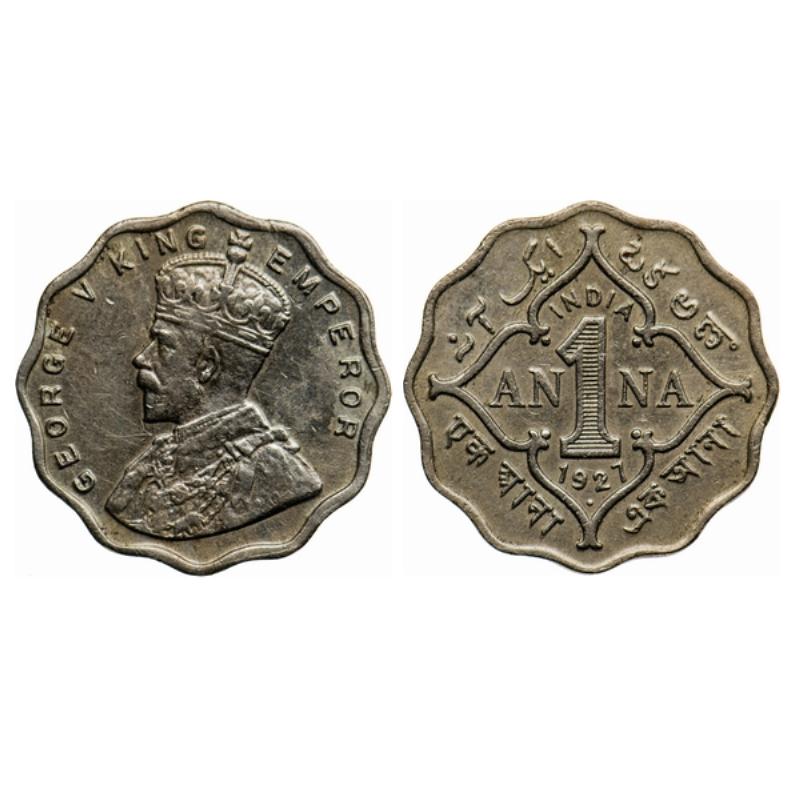 George V, Copper Nickel, 1 Anna, 1927, Bombay Mint, Dot. GK 1158.