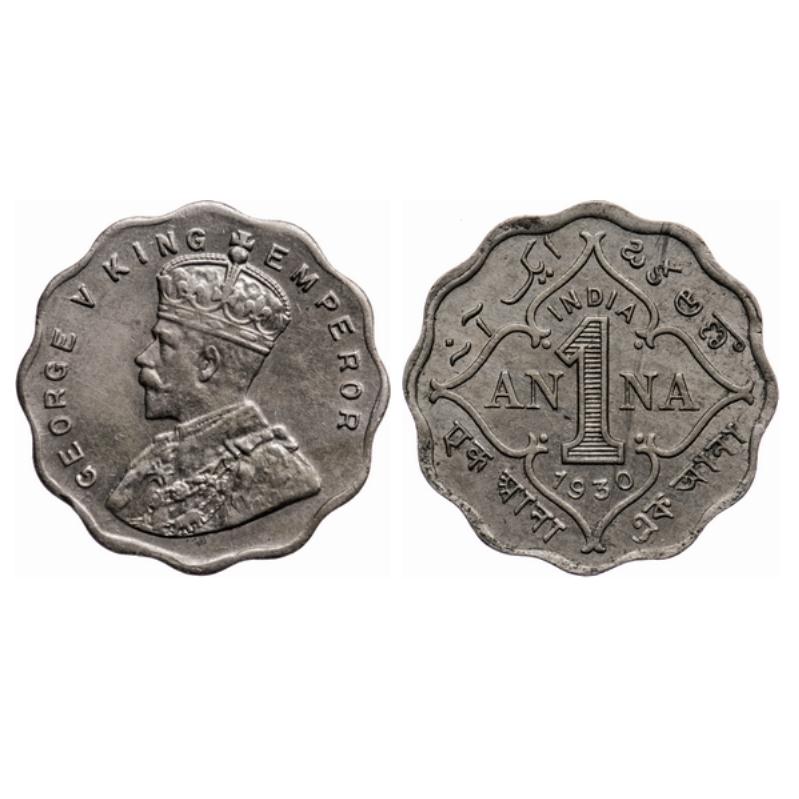 George V, Copper Nickel, 1 Anna, 1930, Calcutta Mint, No dot. GK 1163.