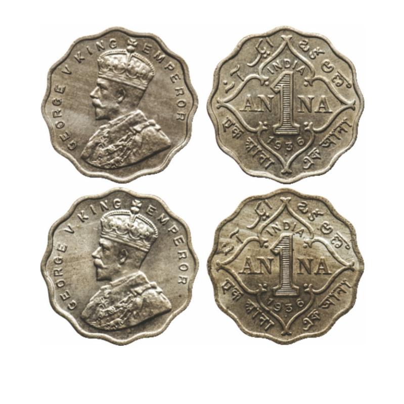 George V, Copper Nickel, 1 Anna (2 Coins), 1936, Bombay Mint, Dot. GK 1168.