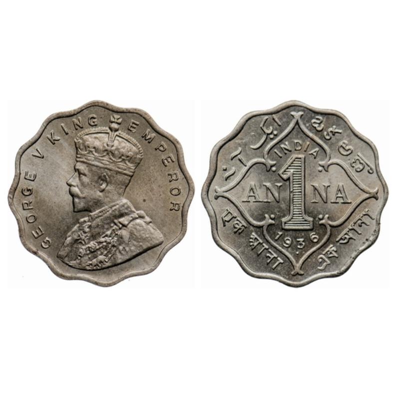 George V, Copper Nickel, 1 Anna, 1936, Bombay Mint, No dot. GK 1168.