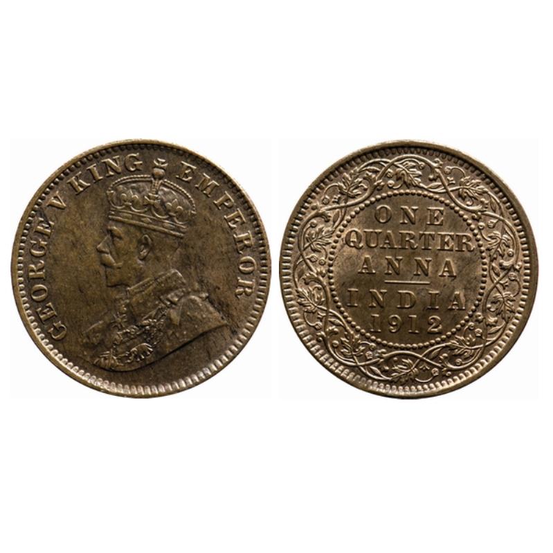 George V, Bronze, Quarter Anna, 1912, Calcatta Mint, No dot. GK 1172.