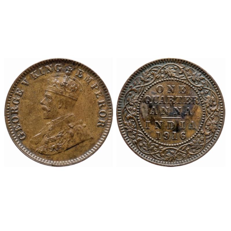 George V, Bronze, Quarter Anna, 1916, Calcutta Mint, No dot. GK 1175.