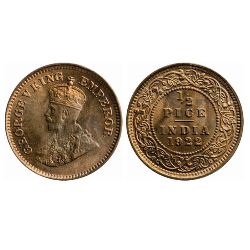 George V, Bronze, ½ Pice, 1922, Calcutta Mint, Ghost on Reverse. GK 1208.