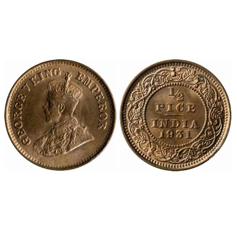 George V, Bronze, ½ Pice, 1931, Calcutta Mint, No mint mark, Die cracks on Obv. GK 1217.