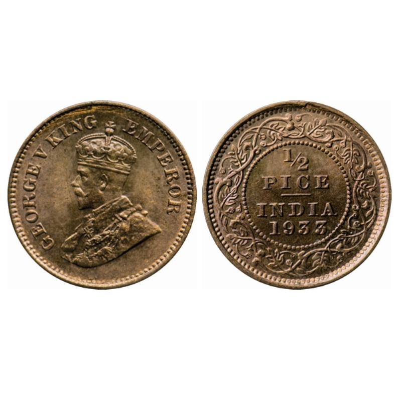 George V, Bronze, ½ Pice, 1933, Calcutta Mint, No mint mark, Extra metal on Reverse. GK 1219.
