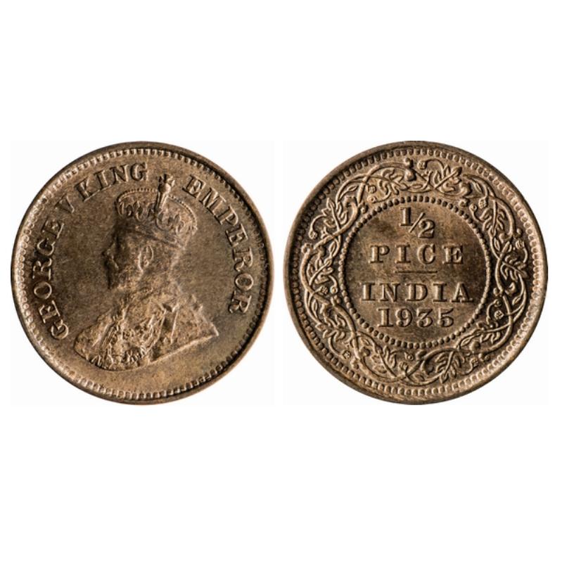 George V, Bronze, ½ Pice, 1935, Calcutta Mint, No mint mark. GK 1221.