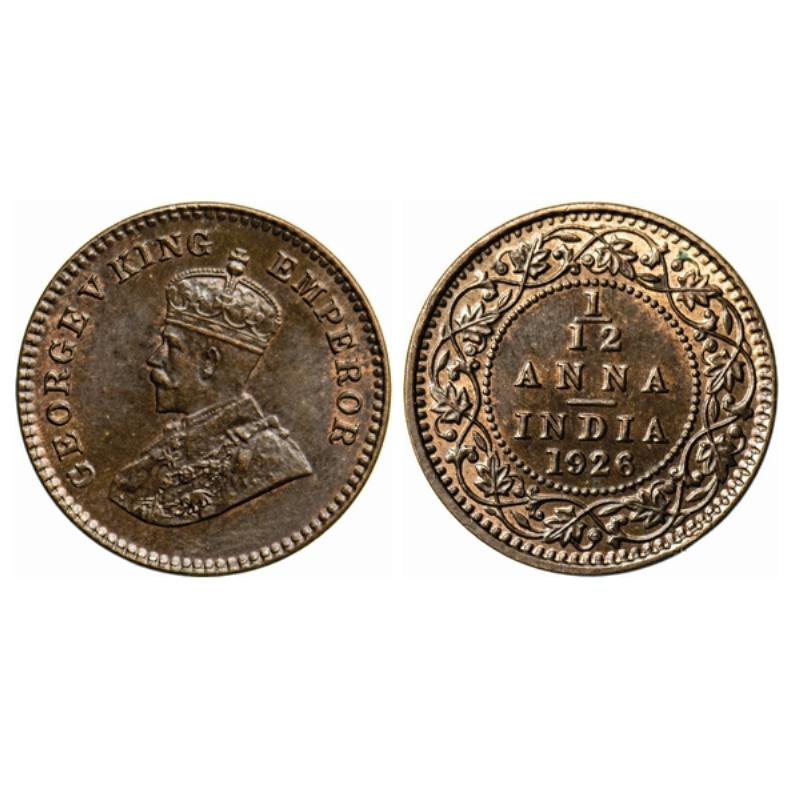 George V, Bronze, 1/12 Anna, 1926, Calcutta Mint, No dot. GK 1240.