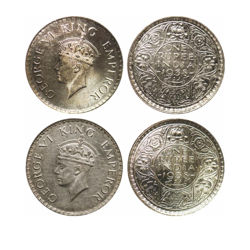 George VI, Silver, Rupee (2 Coins), 1938, Bombay Mint, With and without dot. GK 1254, 1255.