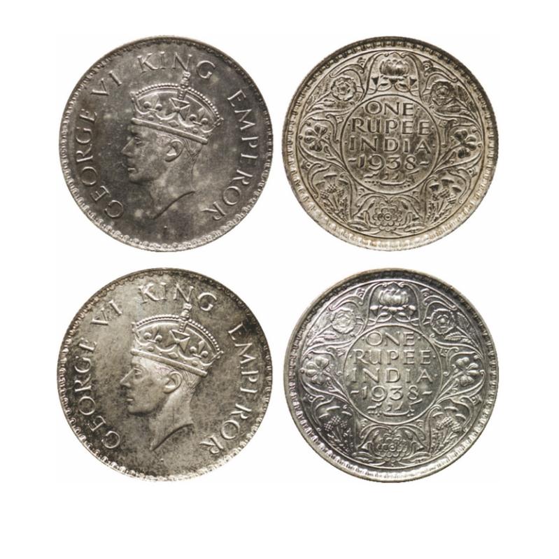 George VI, Silver, Rupee (2 Coins), 1938, Bombay Mint, Dot. GK 1254, 1255. ...