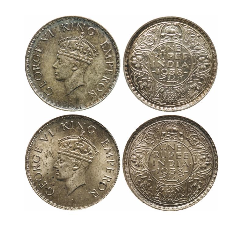 George VI, Silver, Rupee (2 Coins), 1938, Bombay Mint, Dot. GK 1255.