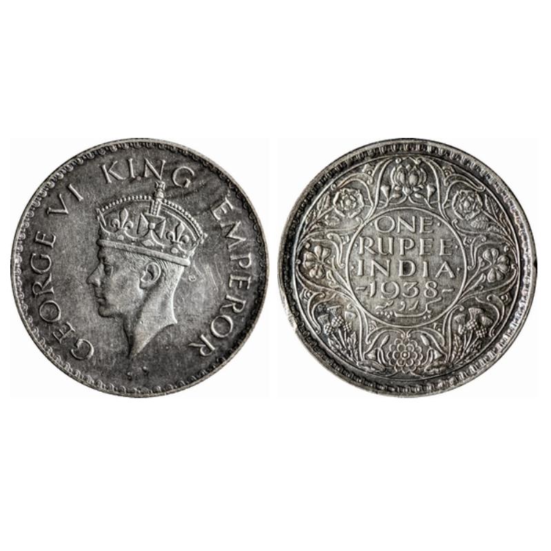 | George VI, Silver, Rupee, 1938, Bombay Mint, A/I, No dot, Milled edge, Reverse dies were supplied by Calcutta Mint to Bombay Mint, that is why no dot. GK 1254. |