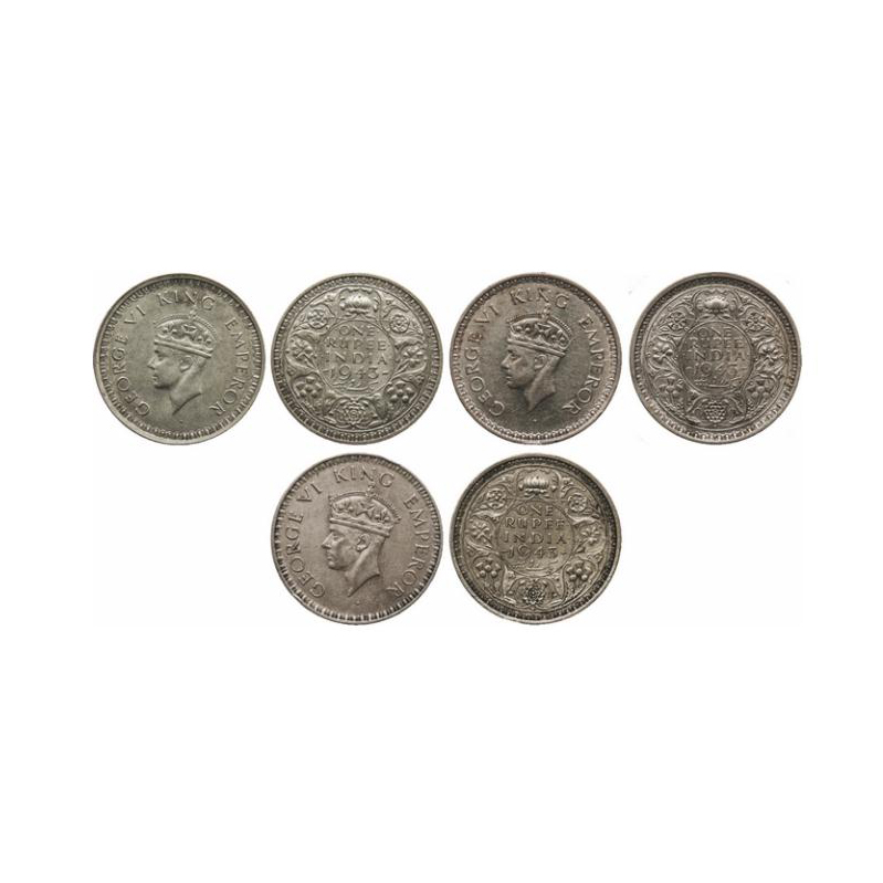 | George VI, Half Silver, Rupee (3 Coins), 1943 (Bom) B(a)/II, small 3, large head, 1943 (Bom) B(a)/II, large 3, 1943 (Bom) C/III, large 3. GK 1265, 1266, 1271. |