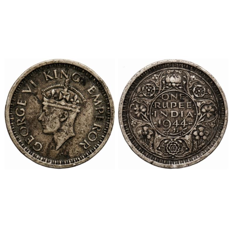 George VI, Half Silver, Rupee, 1944, Bombay Mint, C/III, Diamond, Security Edge, last numeral 4 of ...