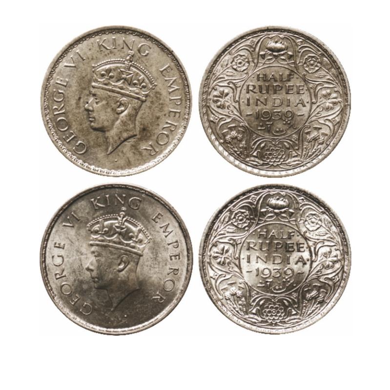 George VI, Silver, ½ Rupee (2 Coins), 1939, Bombay/Type I & Calcutta/Type II. GK 1295, 1298.