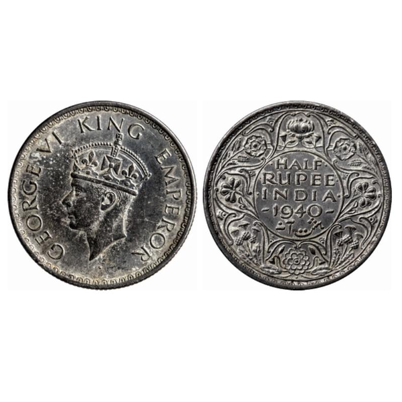George VI, Half Silver, ½ Rupee, 1940, Bombay Mint, Head type II, A(a)/I, Dot, Milled edge. GK 1299.