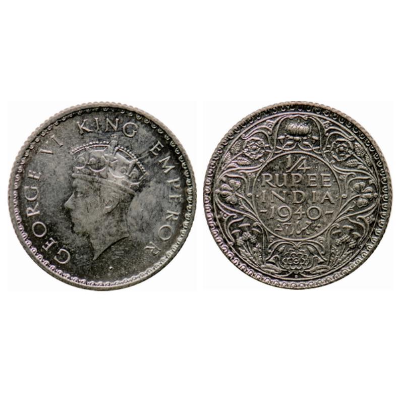 George VI, Half Silver, ¼ Rupee, 1940, Bombay Mint, Type I. GK 1326.