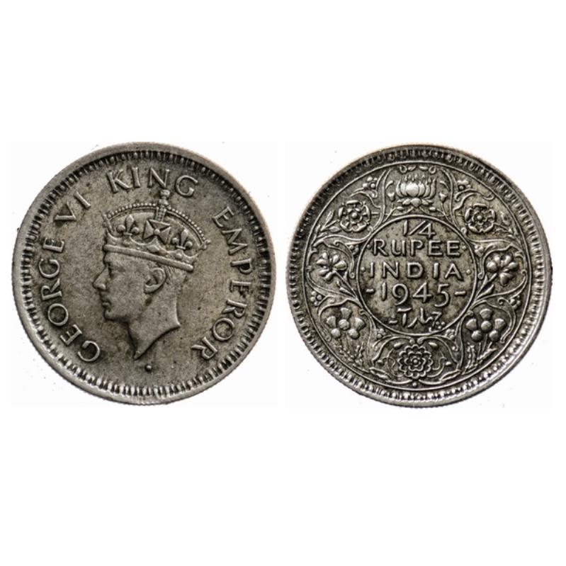 | George VI, Half Silver, ¼ Rupee, 1945, Bombay Mint, Head type II, Reverse II, Dot, Security edge, Large 5. GK 1343. |