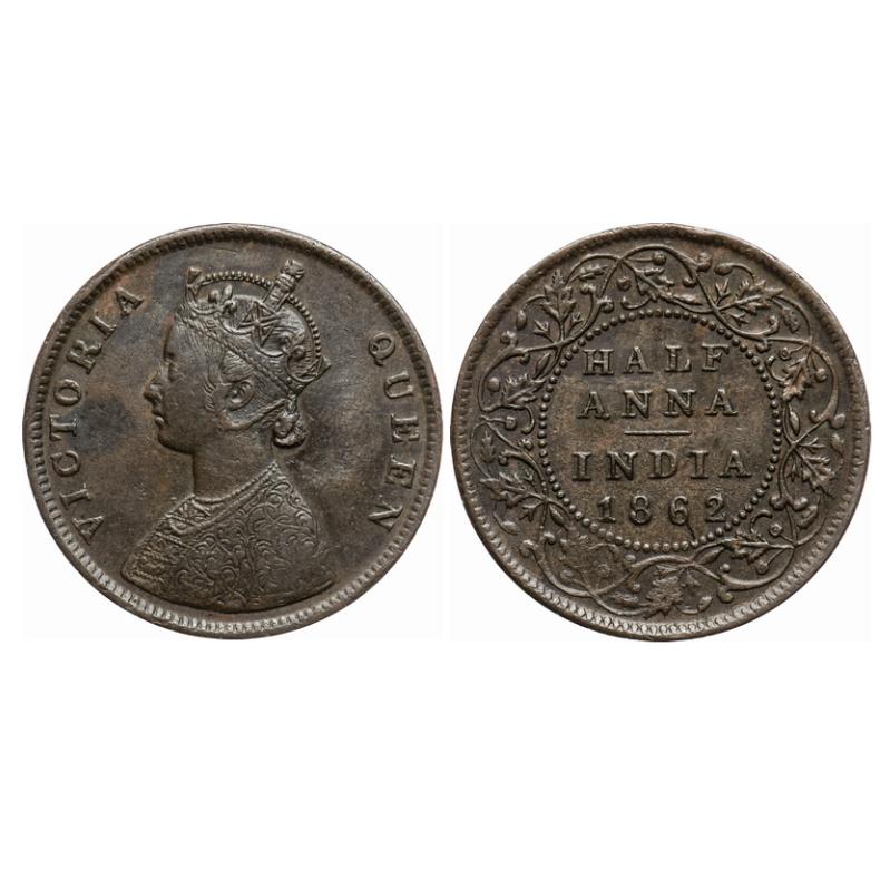 Victoria Queen, Copper, Half Anna, 1862, Madras Mint, A/I. GK 390. Very Fine+. Scarce....