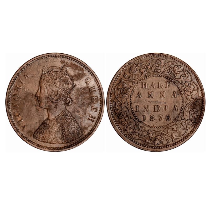 Victoria Queen, Copper, Half Anna, 1876, Calcutta Mint, B/II. GK 819. Very Fine+, Cleaned. Scarce.