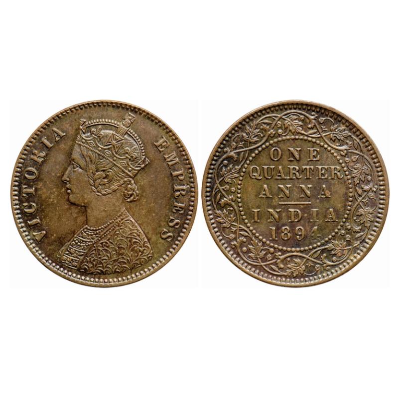 Victoria Empress, Copper, Quarter Anna, 1894, Calcutta Mint, B/II, No mint mark. GK 853. Uncirculat...