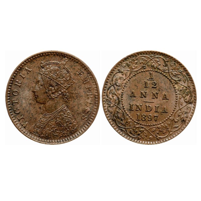 Victoria Empress, Copper, 1/12 Anna, 1897, Calcutta Mint, Obv 'B', No mint mark. GK 918. Uncirculated Details. Very Scarce.