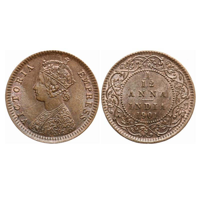 Victoria Empress, Copper, 1/12 Anna, 1901, Calcutta Mint, Obv 'B', No mint mark. GK 921. Uncirculated. Very Scarce.