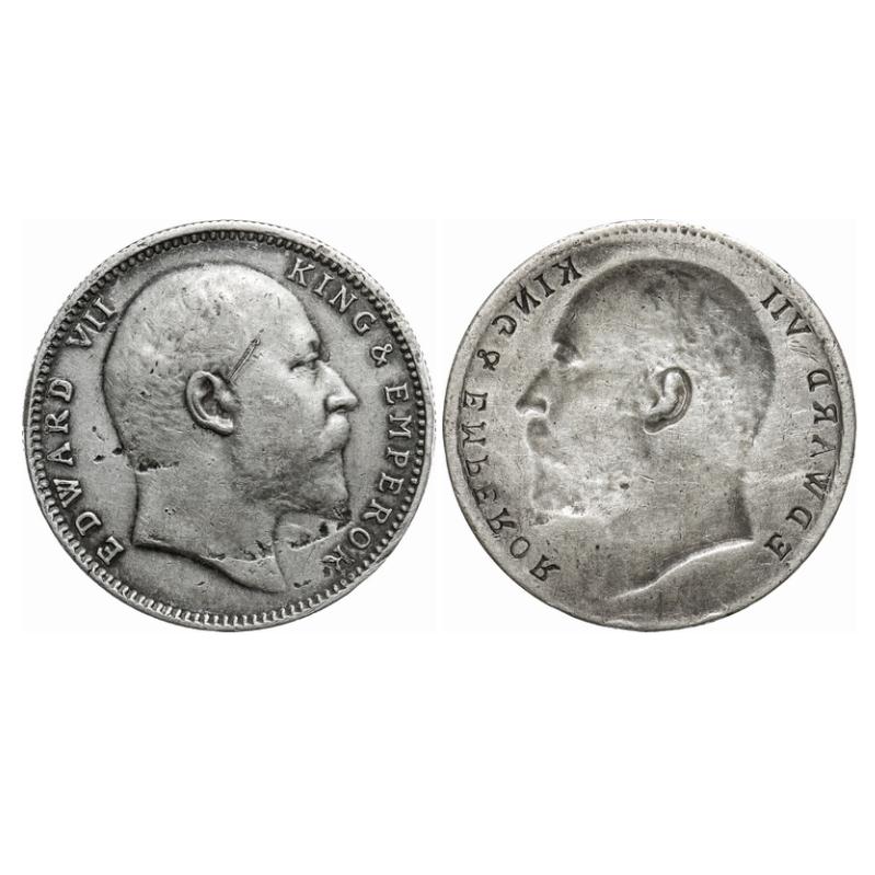 Edward VII, Silver, Rupee, 11.52 gm, Lakhi/Brockage. Very Fine. Rare.