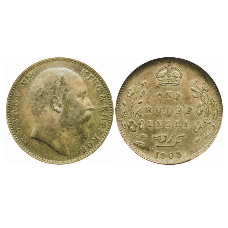 Edward VII, Silver, Rupee, 1903, Error Sun Burst. Rare....
