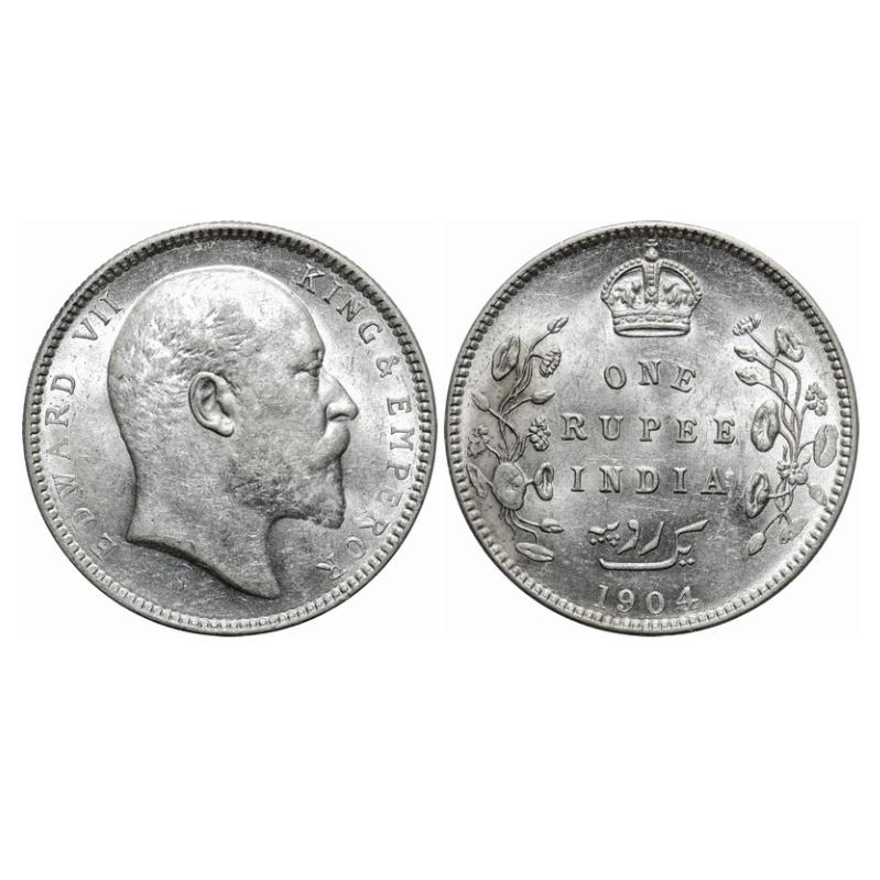 Edward VII, Silver, Rupee, 1904, Calcutta Mint, No mint mark, Normal 5 diamonds. GK 930. Extremely ...