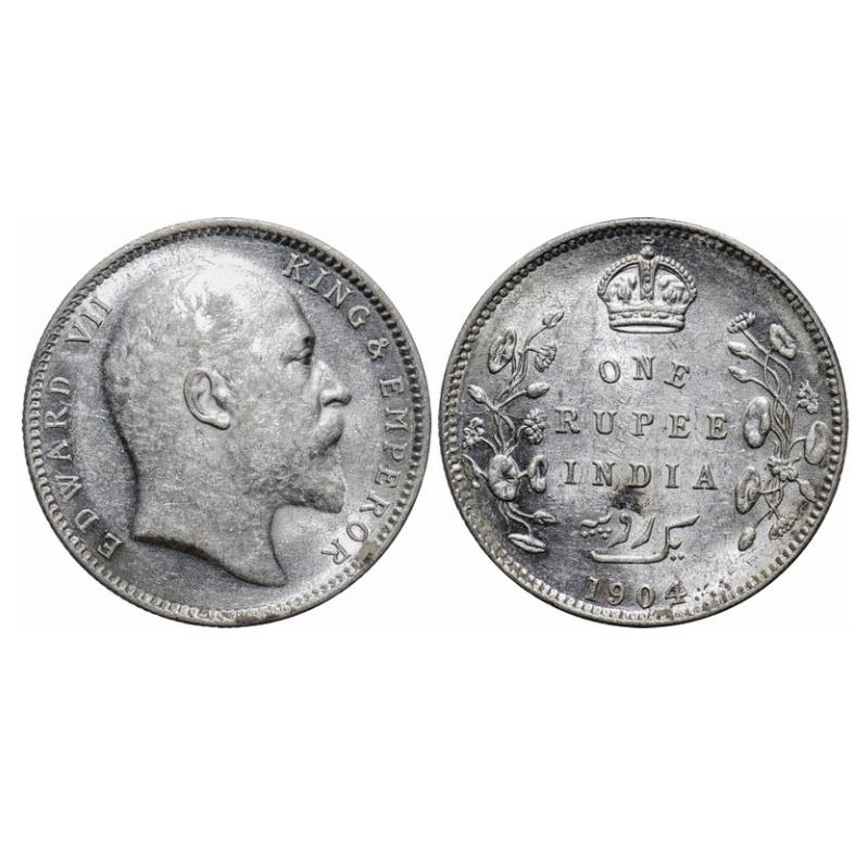 Edward VII, Silver, Rupee, 1904, Calcutta Mint, No mint mark, Normal 5 diamonds. GK 930. Extremely Fine+ Details. Scarce.