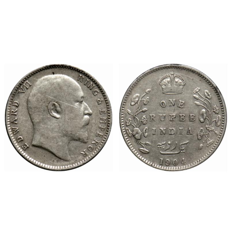 | Edward VII, Silver, Rupee, 1904, Bombay Mint, Error, 3 dots below Ya of Rupiya, incorrect urdu. GK 931. Very Fine, Scarce. |