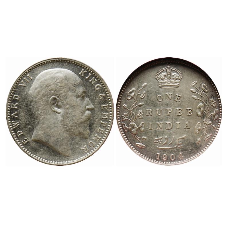 Edward VII, Silver, Rupee, 1904, Bombay Mint, 'B' incused and dot, 5 Diamonds and bottom stroke of numeral '4' short. GK 932. NGS Slabbed. Extremely Fine 45. Scarce.