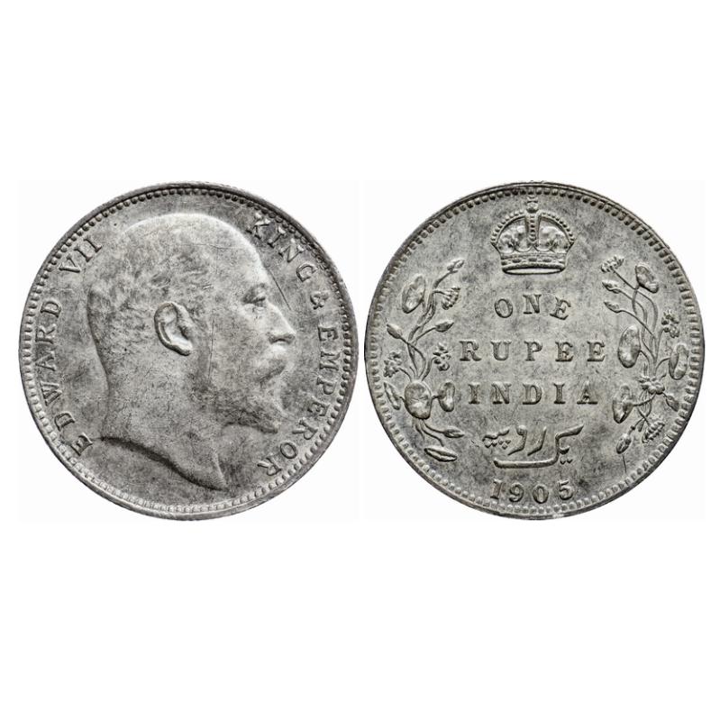 Edward VII, Silver, Rupee, 1905, Calcutta Mint, No mint mark. GK 934. About Extremely Fine. Scarce....