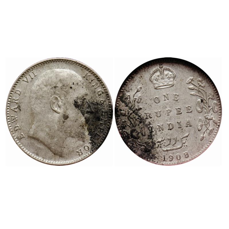 | Edward VII, Silver, Rupee, 1908, Bombay Mint, 'B' incused and dot, Numeral '8' struck on '7' of date, Die rotation on rev. GK 947. NGS Slabbed. Extremely Fine, Details. Very Scarce. |