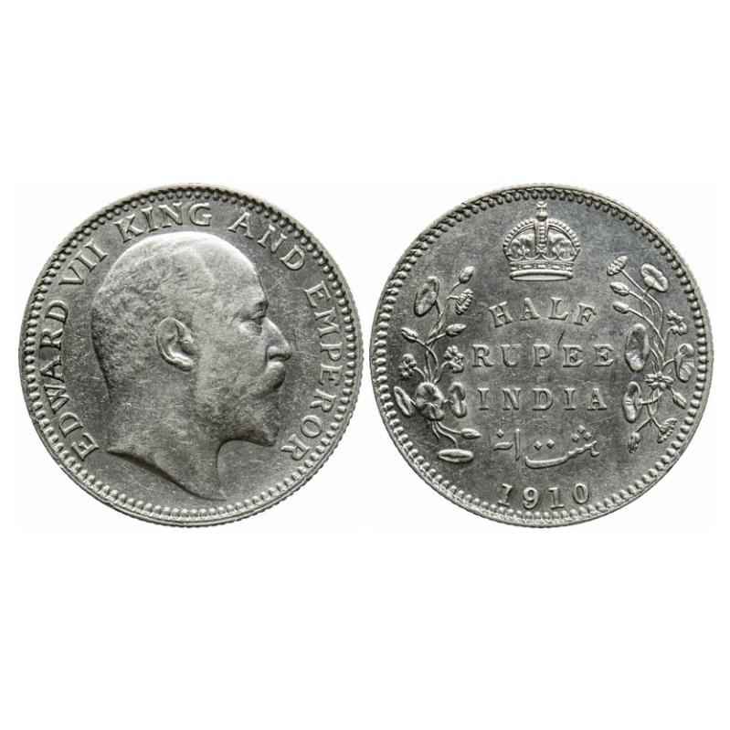 Edward VII, Silver, Half Rupee, 1910, Calcutta Mint, No mint mark. GK 971. Uncirculated. Rare.