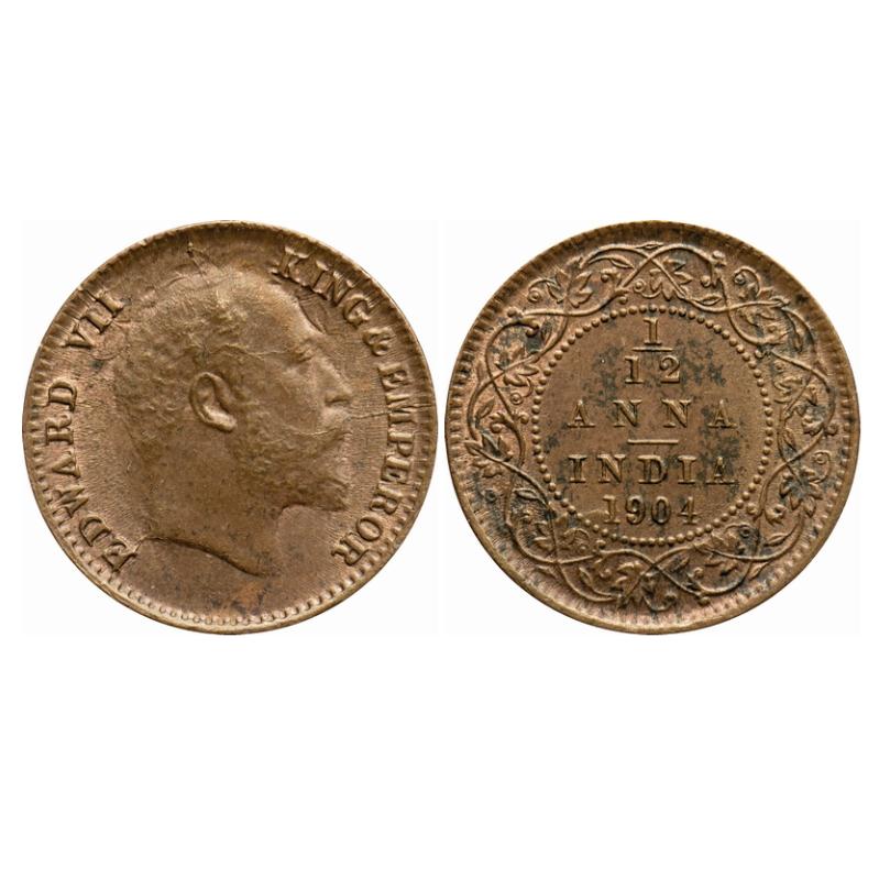 Edward VII, Copper, 1/12 Anna, 1904, Calcutta Mint, No mint mark, Multiple die cracks on obv, Ghost on obv. GK 1013. About Uncirculated. Very Scarce.