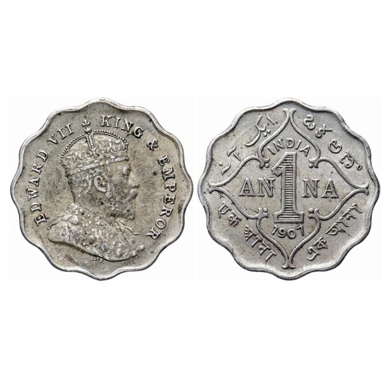 Edward VII, Copper-Nickel, 1 Anna, 1907, Bombay Mint, 'B' incused below the cross pattee of the crown. GK 990. Very Fine+. Scarce.