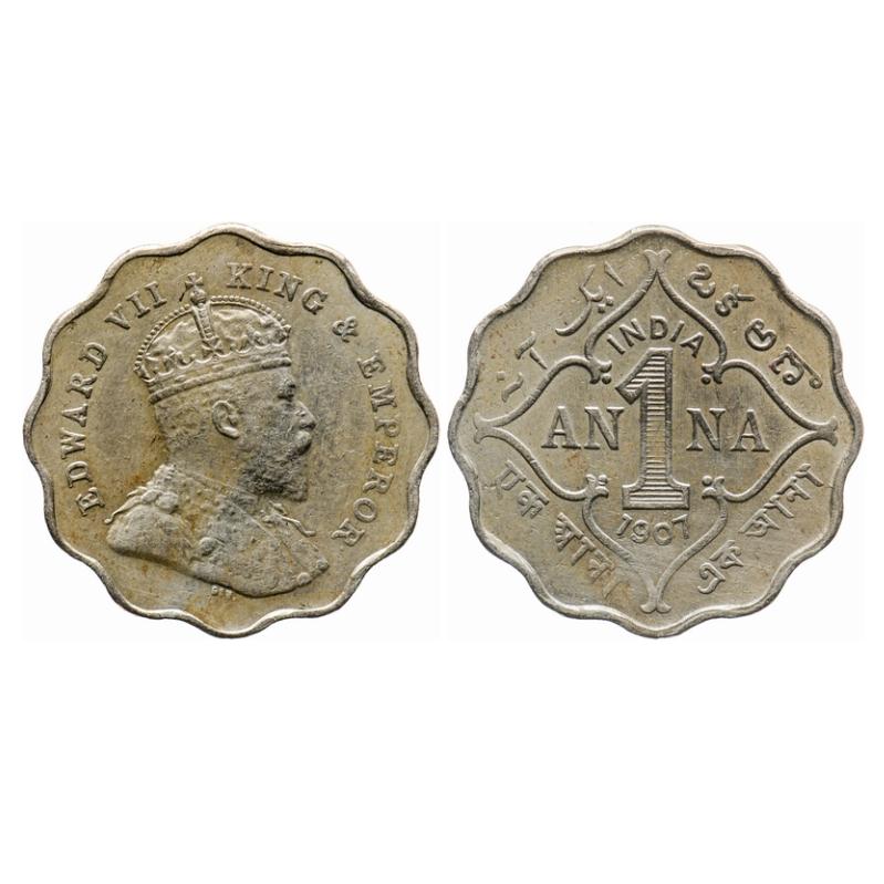Edward VII, Copper-Nickel, 1 Anna, 1907, Bombay Mint, 'B' incused. GK 990. Extremely Fine. Scarce.