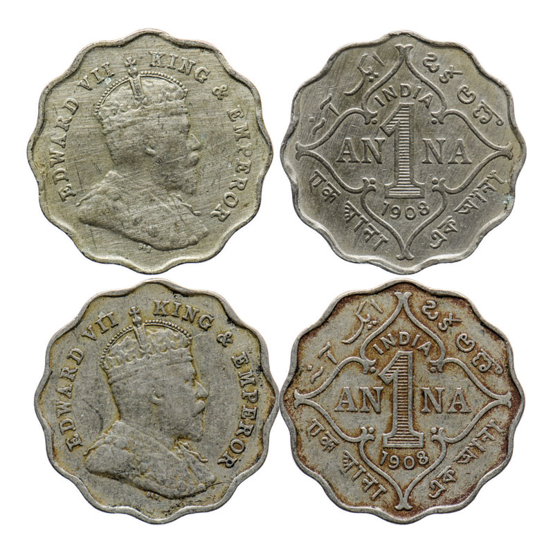 Edward VII, Copper-Nickel, 1 Anna (2 coins), 1908, Bombay Mint, 'B' incused. GK 991. About Very Fine to Very Fine. Scarce.