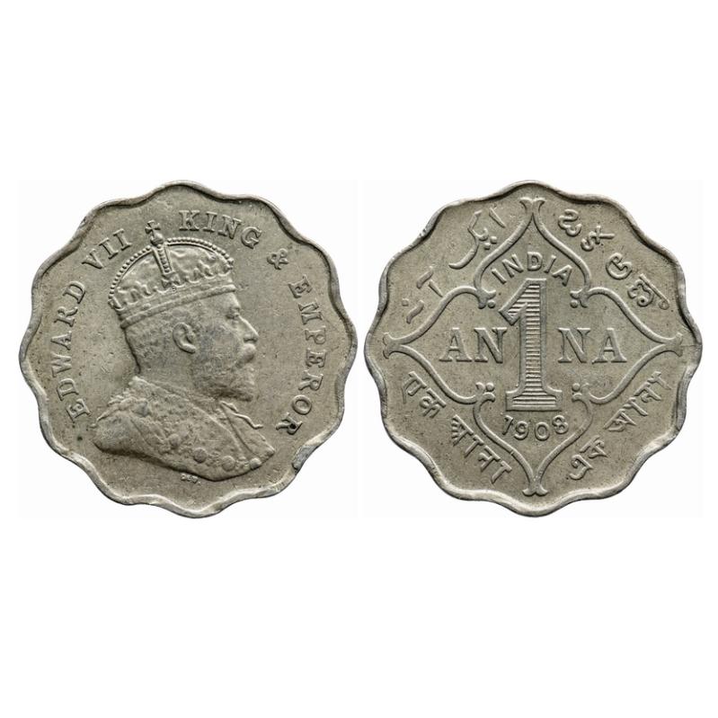 Edward VII, Copper-Nickel, 1 Anna, 1908, Bombay Mint, 'B' incused below the cross pattee of the crown. GK 991. Extremely Fine+. Very Scarce.