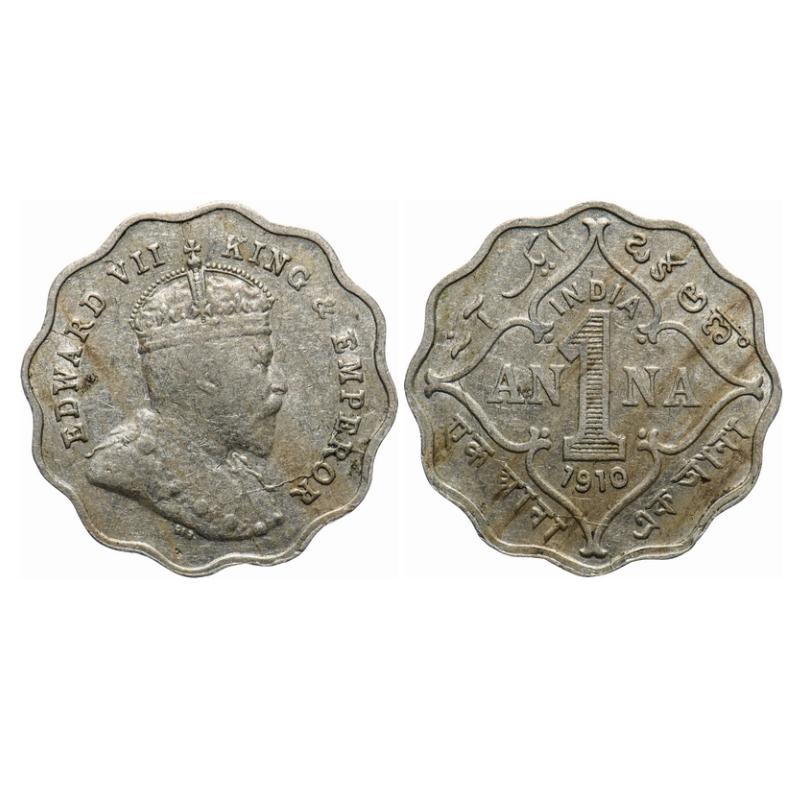 Edward VII, Copper-Nickel, 1 Anna, 1910, Bombay Mint, 'B' incused below the cross pattee of the cro...