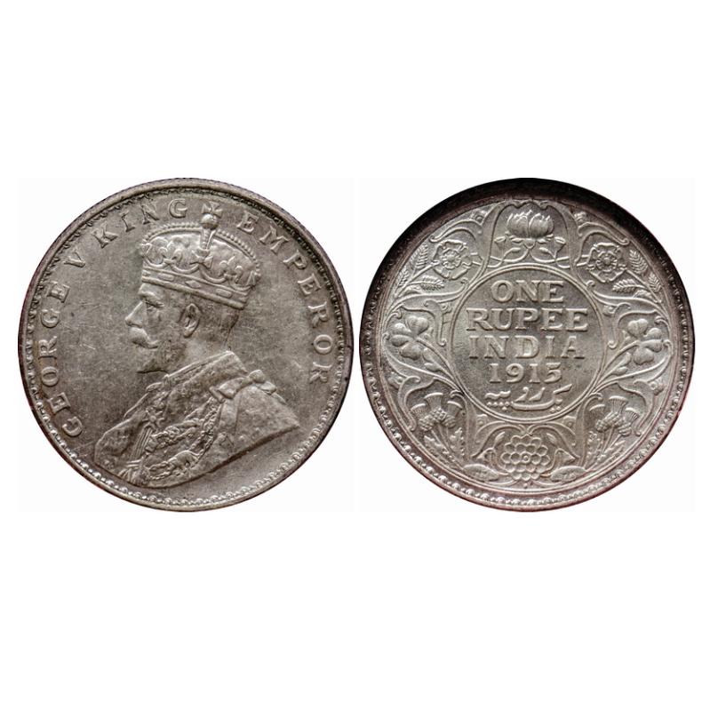 George V, Silver, Rupee, 1915, Bombay Mint, Dot. GK 1032. NGS Slabbed AMS 58. Very Scarce.