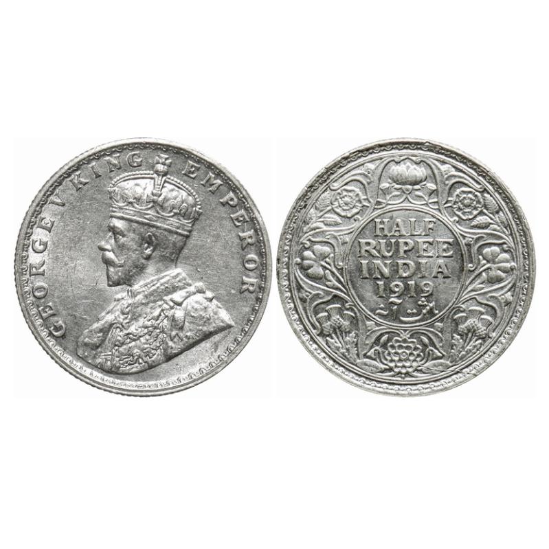 George V, Silver, Half Rupee, 1919, Bombay Mint, Dot. GK 1057. Uncirculated. Very Scarce.