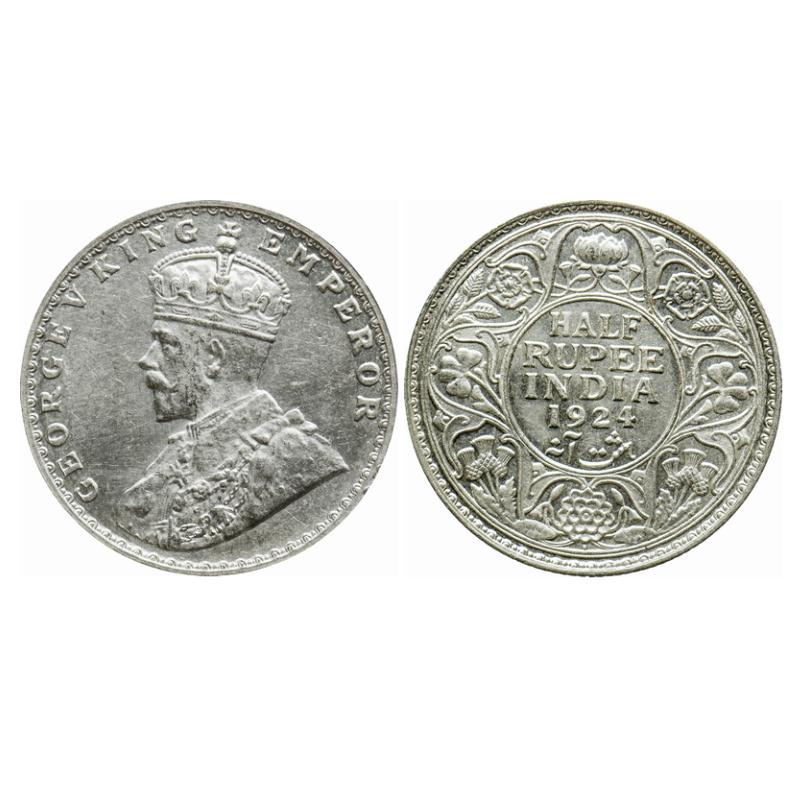 George V, Silver, Half Rupee, 1924, Bombay Mint, Dot. GK 1064. Uncirculated. Very Scarce.