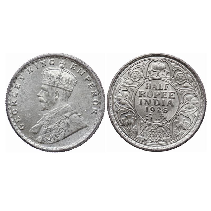 George V, Silver, Half Rupee, 1926, Calcutta Mint, No dot. GK 1067. Uncirculated. Rare.
