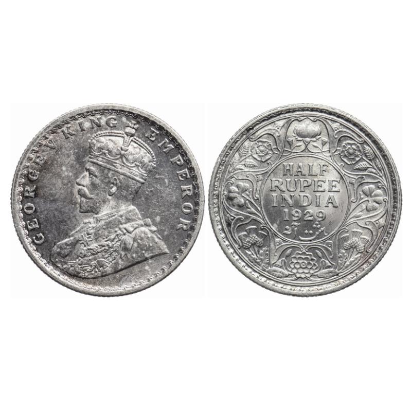 George V, Silver, Half Rupee, 1929, Calcutta Mint, No dot. GK 1071. Uncirculated. Very Scarce.