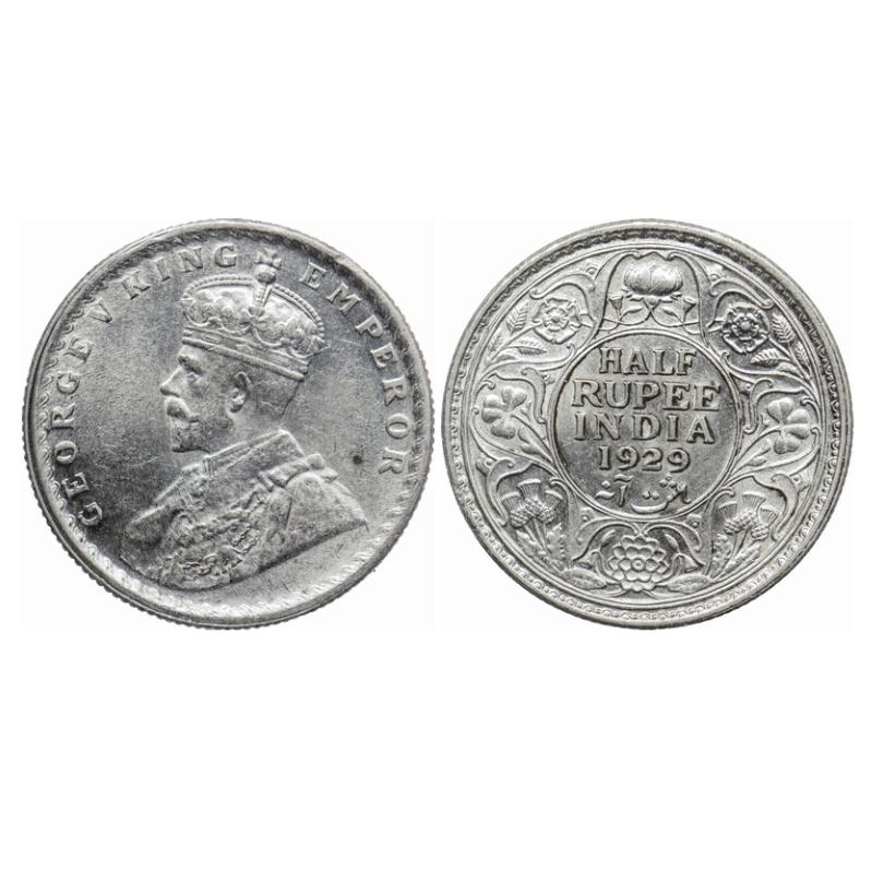 George V, Silver, Half Rupee, 1929, Calcutta Mint, No dot. GK 1071. Uncirculated. Very Scarce....