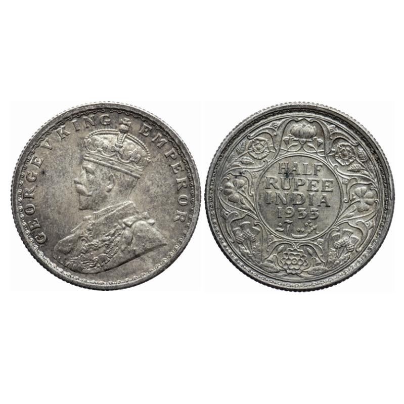 George V, Silver, Half Rupee, 1933, Calcutta Mint, No dot. GK 1073. Uncirculated, Toned. Very Scarce.